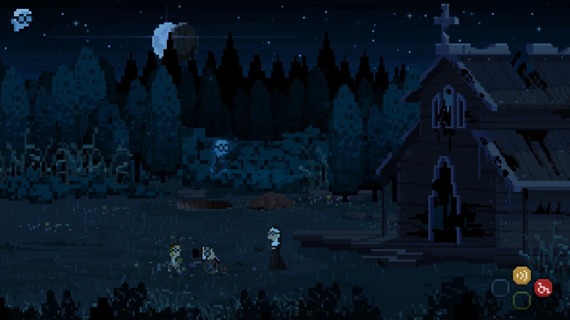 Nine Witches: Family Disruption plunges you into an absurd, darkly humorous adventure set in October 1944. In the remote Norwegian town of Sundäe, a mysterious dark moon hangs over the skies and a hidden Nazi occult division called Okkulte-55 has arrived to unleash an ancient curse that could turn the tide of World War II. You take command of two unlikely heroes: Alexei Krakovitz, a quadriplegic professor of occult science, and his loyal assistant Akiro Kagasawa. Together they must explore a rustic pixel-art world filled with eccentric townsfolk, diabolical inventions, witches, talking dead, wriggling worms and mind-bending puzzles in order to break the curse and save humanity.