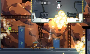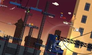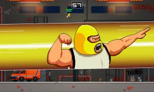 Meet Maurice and El Bruto-twin brothers whose elaborate bank-heist schemes always go sideways when they start bickering. In Super Rocket Shootout you’ll follow their chaotic misadventures in a frantic 2D pixel-art brawler that blends platforming with fighting mechanics, supporting up to four players (local or CPU).