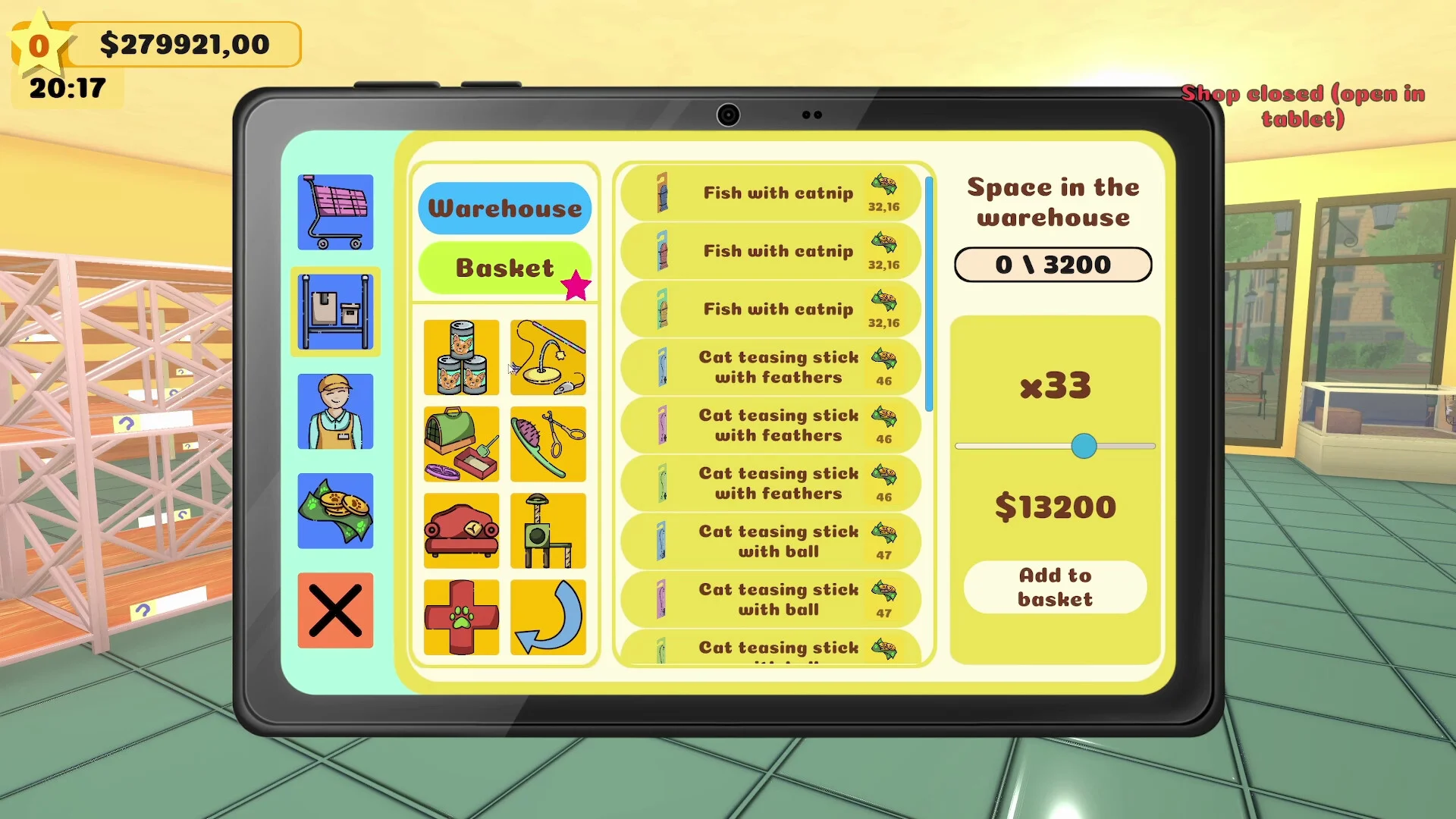 Running a successful pet shop means staying on top of your inventory. Order food, secure specialized equipment, import custom items at your clients’ requests and keep your shelves stocked with quality goods. Thoughtful management translates directly into happier pets and satisfied buyers.