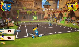 - Tennis: Singles or doubles matches featuring speed boosts and surprise hazards.