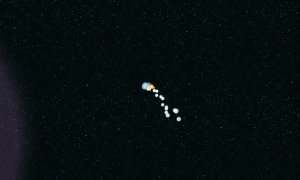 In the game, you play as a tiny pink naked cosmonaut who finds himself in a distant galaxy. While the story isn't immediately clear, playing consecutive games will gradually reveal some of the deeper mysteries of the universe around you.
