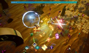 Every 20-minute run feels like a carnival in full swing. Gorgeous, stylized landscapes explode in vivid color as you trigger chain reactions, dodge enemy fire, and unleash everything from shotgun spears (perfect for skewering foes or impromptu snacks) to weaponized garbage trucks and a bee-shooting gun. Along the way you’ll unlock dozens of upgrades and customizable options that let you tailor builds to your playstyle-whether you prefer raw firepower, rapid-fire swarm control, or tactical support gadgets.