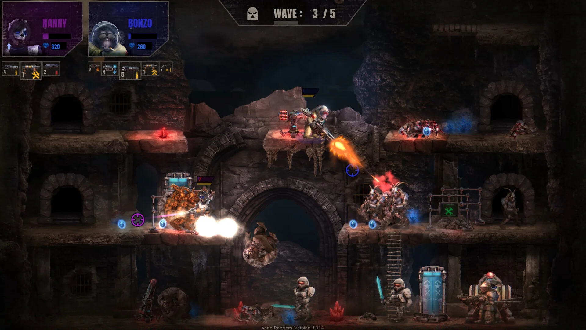 With its tight platforming controls, strategic base-building and cooperative spirit, Xeno Rangers delivers a nostalgia-inducing journey through underground worlds teeming with danger and wonder. Prepare your squad, erect your defenses and blast your way to victory-because in the hollow Earth, only the smartest and bravest rangers survive.