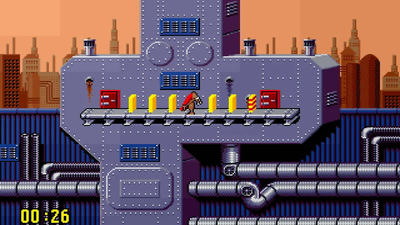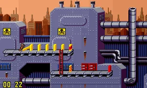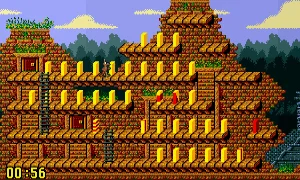 Pushover puts you in control of G.I. Ant as he tries to gain entry to Captain Rat’s Treasure Caves. The game features 100 increasingly tricky puzzles spread across nine themed worlds. Each stage is made up of several connected platforms populated with various "dominoes" that must be arranged so a single push sets off a chain reaction that clears the way to the exit.