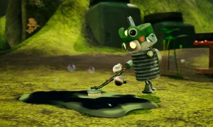Gameplay centers on cleaning, repairing and helping the quirky robot inhabitants you meet. Scrub messes, collect trash and recycle it at RECYC0TRONS to earn extra cash, which you can spend in local stores. Along the way you’ll hunt for golden cogs, coins and hidden trinkets tucked into nooks and crannies, mixing light platforming with scavenger-hunt style exploration and tidy-up objectives.