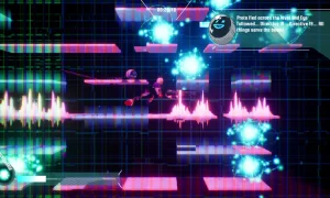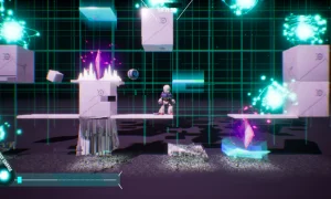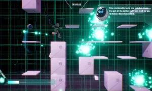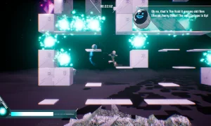 The game’s personality comes from its two leads: Proto, the silent protagonist you control, and Eye, a loud, sarcastic companion voiced by Tyler Carr. Eye provides constant commentary-sassy, occasionally unhinged-and helps sell the tone as you scramble upward. That interplay adds humor and character to what could otherwise be a very austere platforming experience.