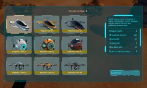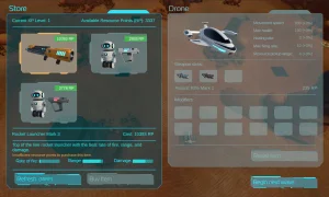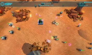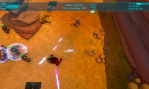 Gameplay is focused on surviving repeated assault waves (each lasting about 1-3 minutes). Move your drone with a controller or mouse, gather resources and XP, and watch your drone’s weapons automatically fire at nearby enemies. Between and during waves you can spend collected resources to unlock stronger weapons, upgrade your drone, and build or improve defensive towers placed strategically on the map to bolster your defenses. Progress earns XP used to unlock more advanced drones from a roster of nine, each with unique weapons, abilities, and tower options.