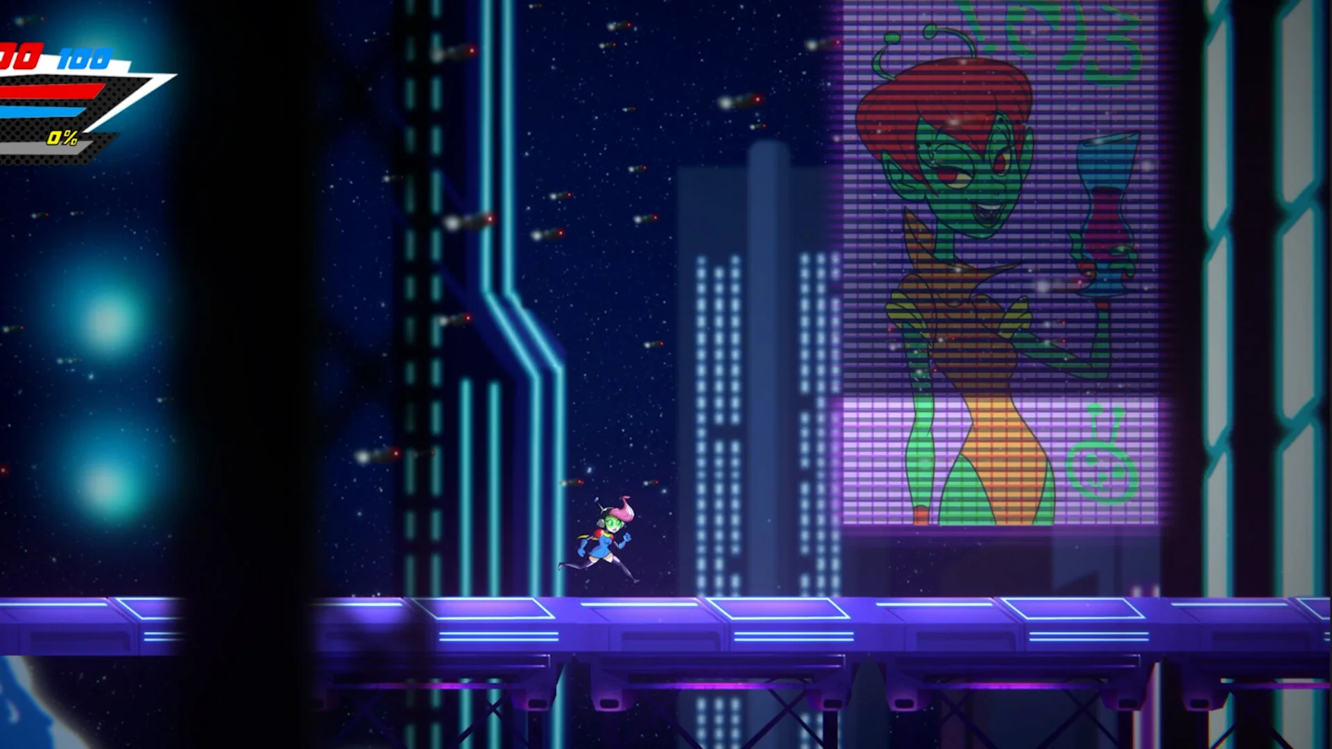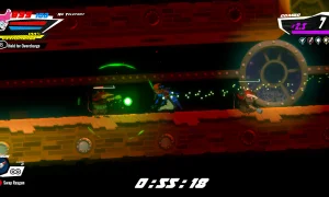 Raygun Gadabout is a fast-paced action-platformer that mixes rewarding exploration with tight, high-energy combat. Jump between planets, pilot your own starship, and tackle a variety of hazardous locations-from sprawling futuristic cities to treacherous moons, asteroids, and even the insides of gigantic space creatures.