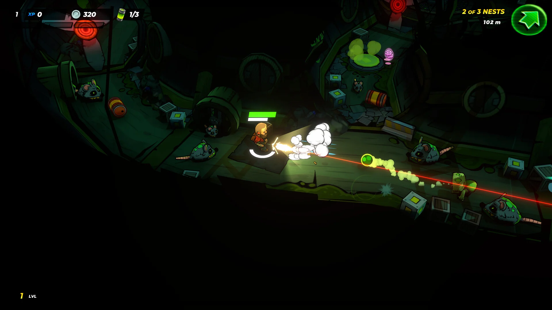 Bullets & Brains drops you into a gritty post‑apocalyptic world where you-one of the last survivors-must fight through ruined streets, abandoned buildings, grimy alleys, forests, sewers and snowy mountains against endless waves of zombies. The game is a top‑down 3D shooter with fast, intense combat: collect brains and energy to level up and unlock powerful abilities that turn the tide in battle, customize your approach with different loadouts, and adapt tactics to face new, tougher enemies.
