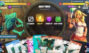 Rounds are about hand management and timing: keeping options open while assembling the right sequence of cards for big combos. You can even swap a card in your hand with one from your discard pile if both cards show the exchange symbol, letting you recover key pieces for a combo or shore up weaknesses. Gems let you customize a character’s toolkit, granting different special moves plus a one-time "gem storm" ability that can swing a match. There are high and low attacks that force different blocks and enable mixups, projectile-focused zoners who can expand their hand with safer ranged moves, and a super meter you fill (by discarding pairs or landing chain combos) to unleash powerful super moves.