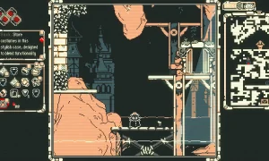The game pairs moody pixel art with an evocative soundtrack; color palettes and musical themes shift to reflect each new area, creating a lively, atmospheric world to explore.