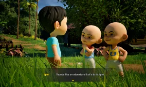 The game opens up from the start: there are no locked areas, no loading screens, and no timers. Players are invited to roam at their own pace, discover hidden corners, and stumble into gentle adventures-just like the freedom of childhood. You can play as Upin and Ipin together in single-player (the twin follows you) or team up locally with a friend.