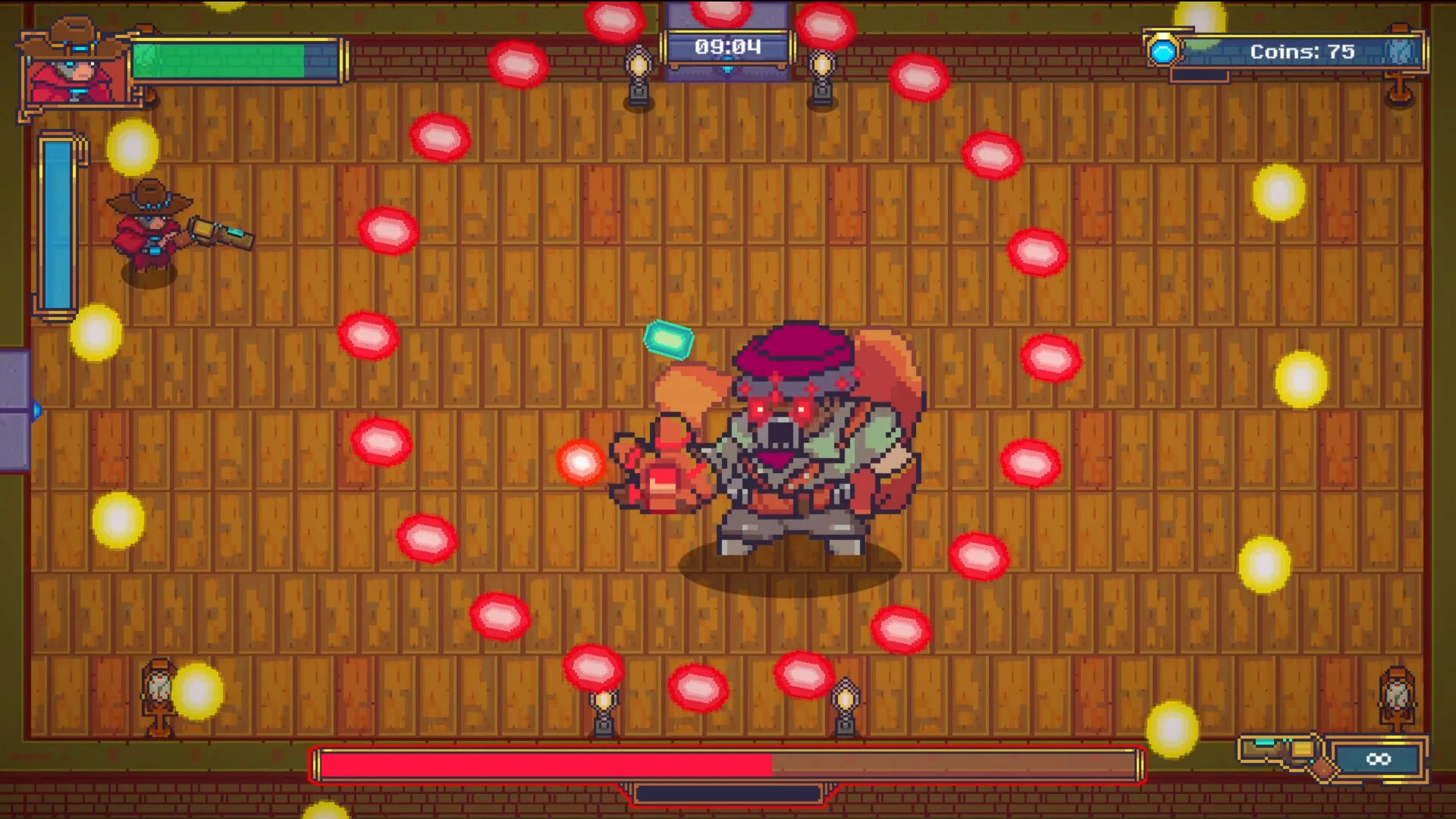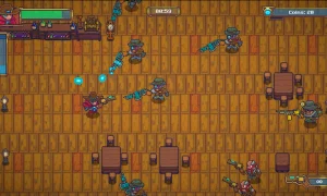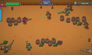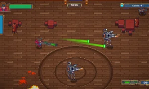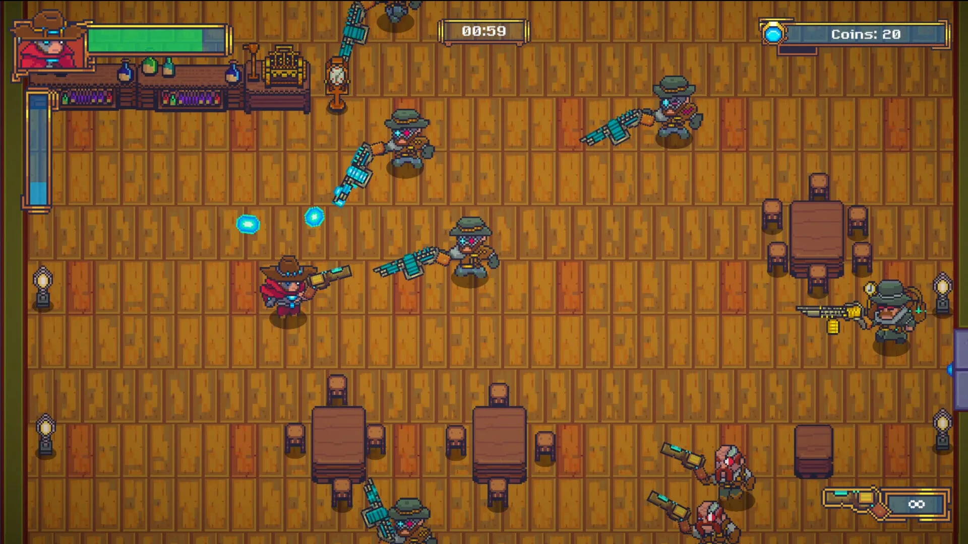 The Legend of Cyber Cowboy blends Wild West flavor with steampunk cybernetics to deliver a fast, arcade-style top-down twin-stick shooter. You play as a gunslinger with a mechanical arm, blasting through waves of cyborg bandits and clockwork monstrosities rendered in crisp, colorful pixel art. Encounters are quick and intense, with a focus on positioning, dodging, and weapon variety.