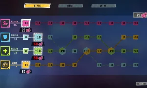 Pick up helpful items that change how you move and fight - from double jumps to bizarre weapons like the "refreshing" ray - and collect Mucus dropped by enemies. Mucus can be banked as currency to unlock persistent upgrades in a progression tree, so death just sets you up for stronger future runs. Die After Sunset can be downloaded.