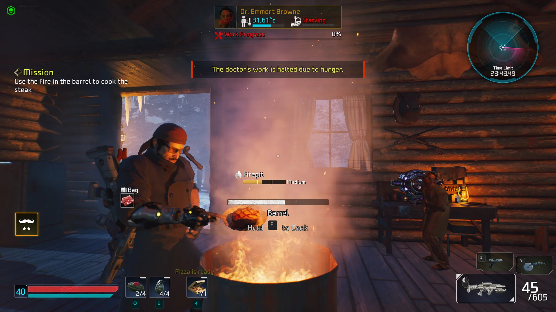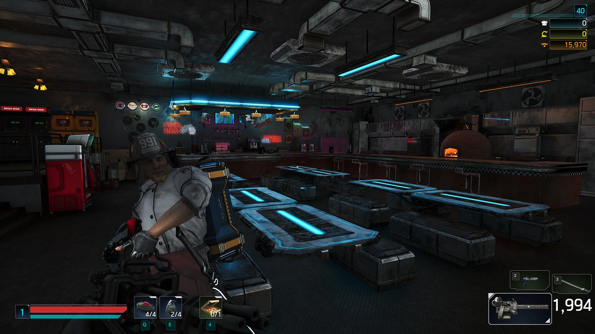 Plan each mission from the loadout screen: choose guns, skills, and upgrades wisely. Scavenge ingredients and weapon parts during runs, accept bounty contracts to unlock deadlier tools and hotter abilities, and funnel credits into your restaurant between missions. Buy furniture, appliances, neon signs and decor to customize the vibe of your eventual five-star hotspot.
