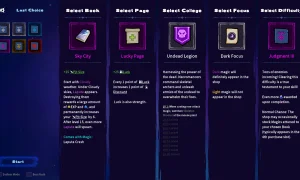- Play as an awakened book with a lineup of thematic tomes (e.g., Bible magic, advanced mathematics, surreal titles).