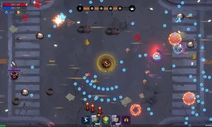 - Magic shooting gameplay that merges roguelike, tower defense, and vampire survival inspirations.