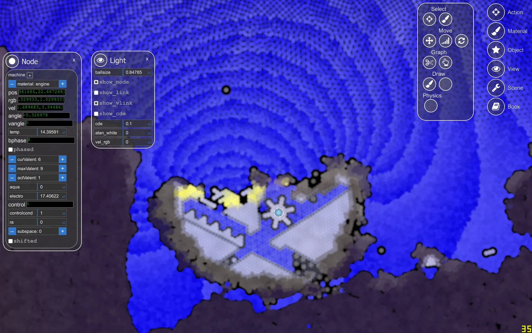 - The engine is designed for experimentation: build mechanisms, create A-Life ecosystems, observe evolution and train simple AI in procedurally governed environments.