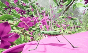 The game includes full lifecycles for species such as Praying Mantis, Jumping Spider, Monarch Butterfly, Common Blue Butterfly, Ladybug and Grasshopper. Many species have distinctive behaviors: ballooning on silk strands as spiders, metamorphosis as butterflies, hunting and ambush tactics as mantids, and more. The simulation emphasizes millimeter-accurate scale and environmental detail.