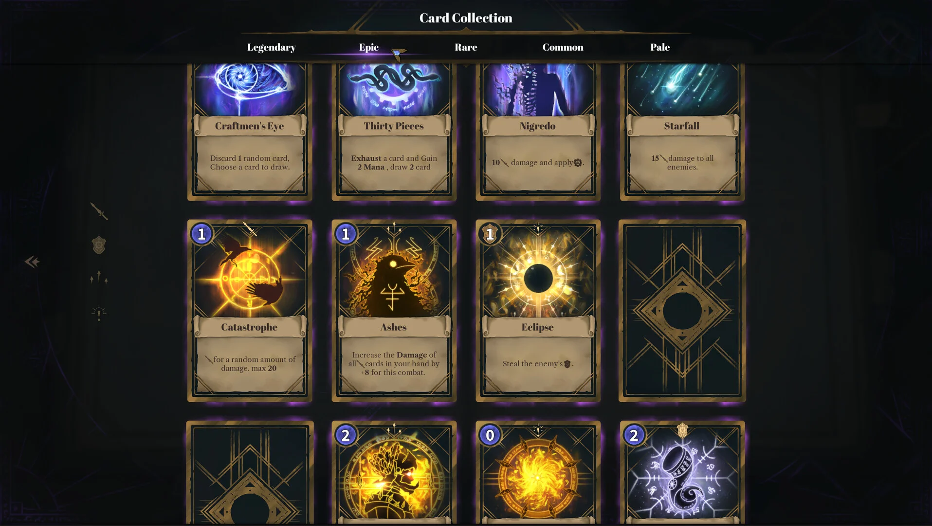 Before each run you pick one of twelve relic-like artifacts that define your playstyle. Each artifact grants specific status effects, upgrades your starting cards, and adds themed cards to your deck. They also shape the rewards you receive, so victories tend to grant cards that reinforce the artifact’s strategy, opening distinct tactical options with each choice.