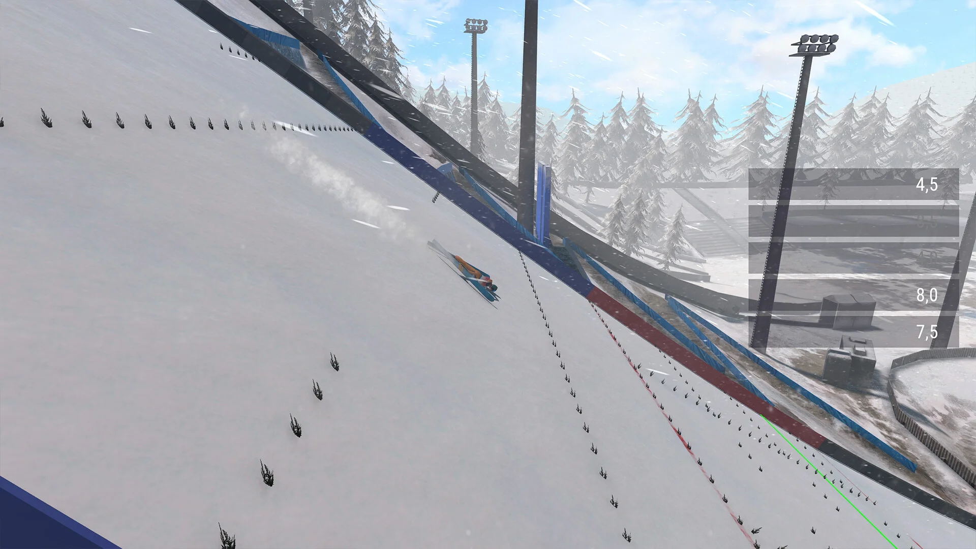 Ski Jumping World Cup delivers a focused, adrenaline-filled take on the sport, putting you on 15 of the world’s most iconic ski jumping hills. The game balances accessibility and depth: a step-by-step tutorial and practice mode help you learn timing and technique, while World Cup season play and custom tournaments let you test those skills under pressure. Flight controls feel weighty and responsive, with wind and weather playing a meaningful role - every jump demands precision and nerves.