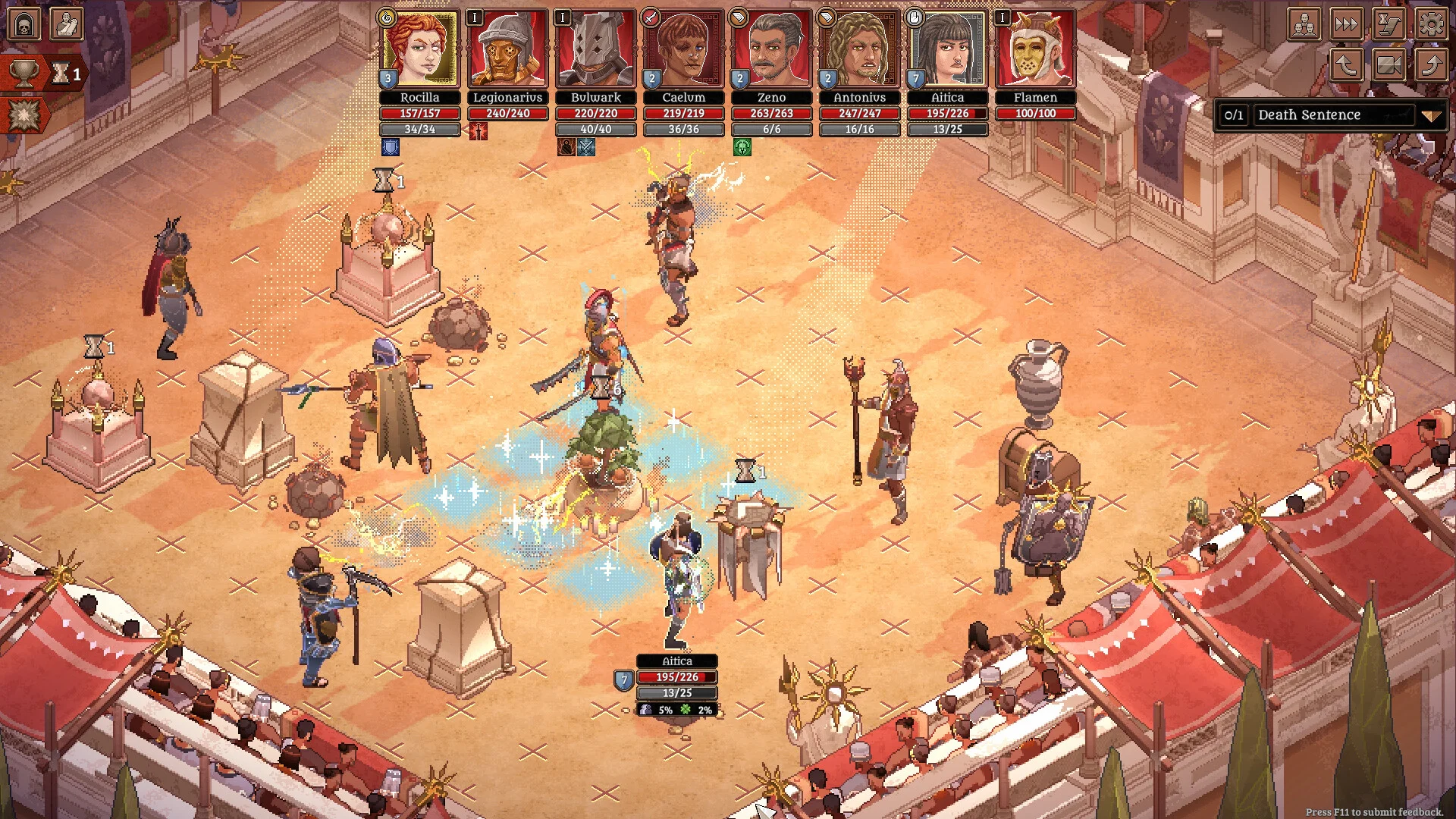 - Permanent death: lost gladiators and equipment remain gone, raising the stakes of every fight.