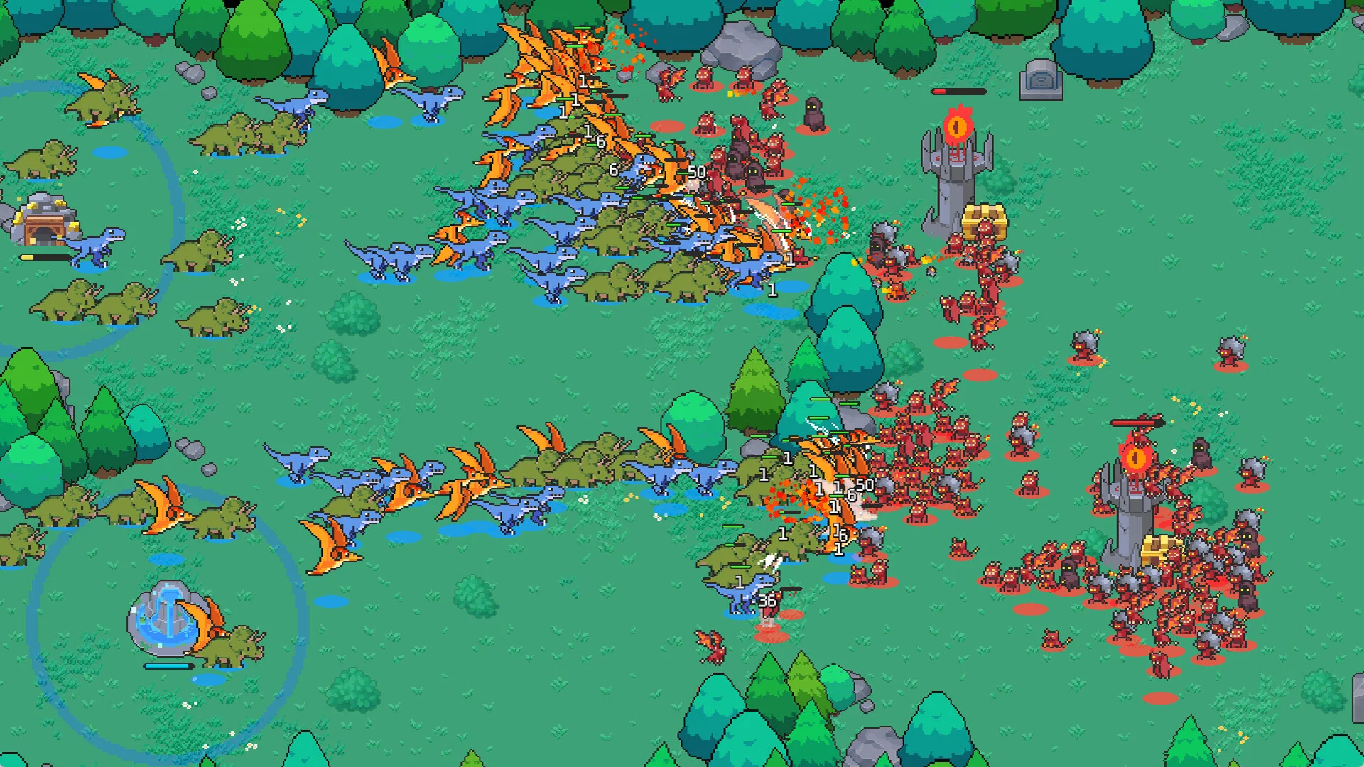 Pick one of three distinct factions-Humans, Demons, or Dwarves-each with completely different building rules and strategic possibilities. Combine units and structures to exploit synergy bonuses, forge an unstoppable frontline, and experiment with wild, unexpected tactics (endless skeleton hordes or combined air‑and‑ground dinosaur strikes, anyone?).