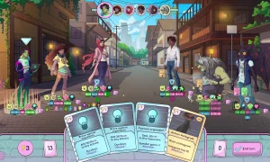 Gameplay is approachable but deep. New players can pick it up quickly, while experienced card-battlers will find plenty of strategic complexity in how decks are built and balanced. Each of the seven playable characters brings distinct debate skills, and you expand your options by unlocking and upgrading cards, visiting a mysterious former activist’s shop, and equipping permanent boosts like collectible plushies.