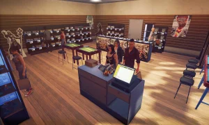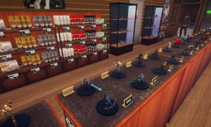 - Business growth: use profits to buy new stock (miniature boxes, board games), decorations and upgrades that draw in more customers and VIPs.