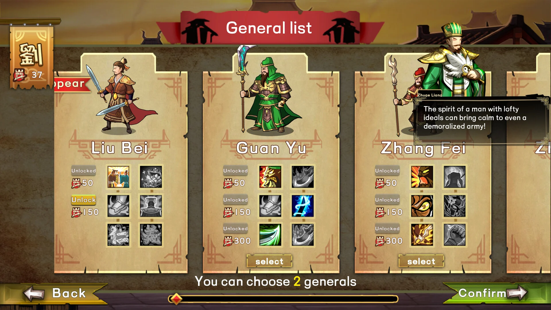 - Choose a leading general and equip your army before each run.
