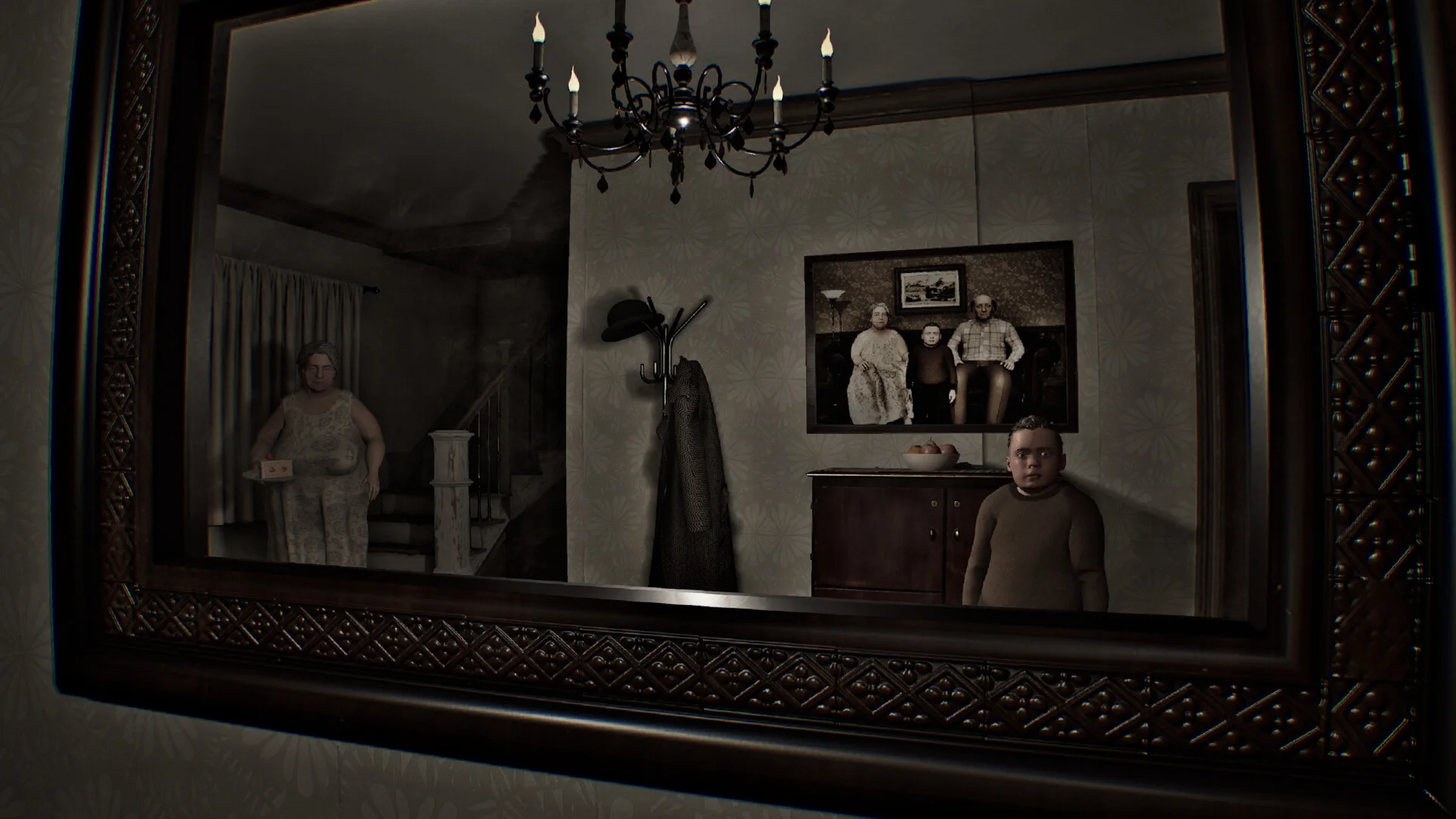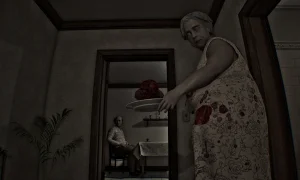 Rooms loop on themselves, time feels frozen at midnight, and "grandmother" refuses to let you go until morning. She keeps offering you cake and repeatedly sends you back to your room when you try to leave.