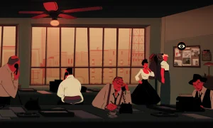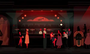 One of the game’s strongest features is its visual style: a bold 2D art direction, fully animated scenes, and a striking presentation that captures the feel of classic film noir. The experience is also supported by a smooth jazz soundtrack that fits the atmosphere perfectly.